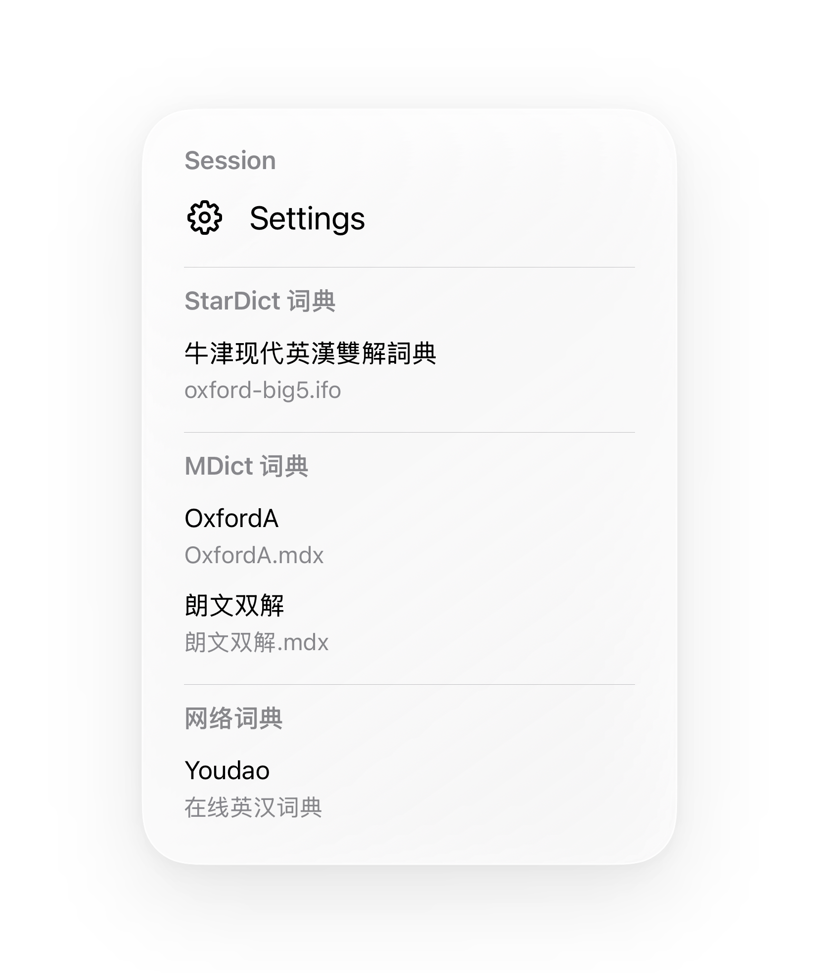 Bring the files you already trust into aDict, then read them in the flow of your day. Their structure, resources, and familiar rhythm stay close, while history and favorites remember where each word came from.